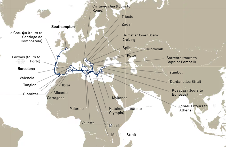 El orden de los puertos y / o el contenido del itinerario puede variar