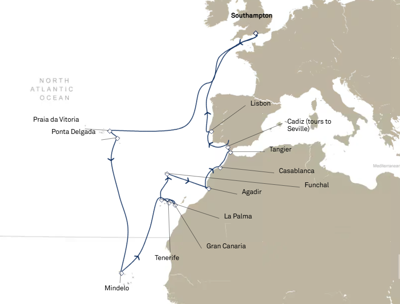13 puertos desde Southampton (Londres)