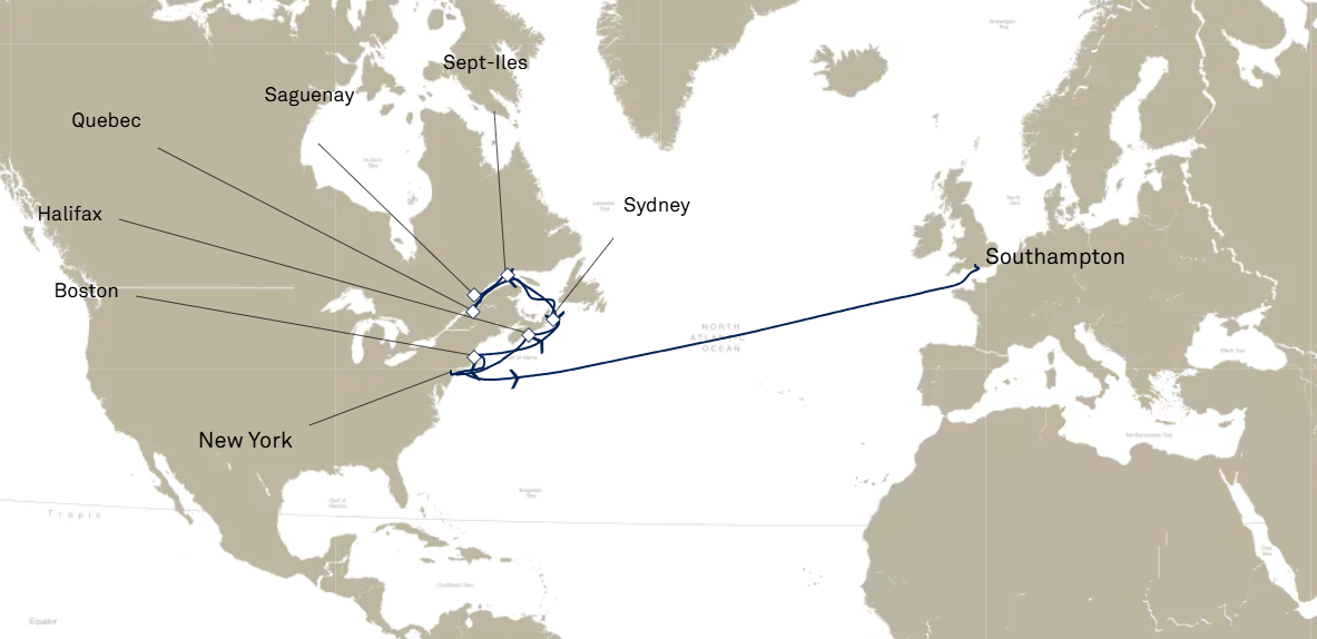 8 ports from New York to Southampton (London)